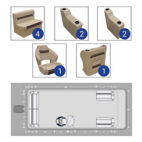 Deluxe Complete 18-22' Fishing Pontoon Furniture Set