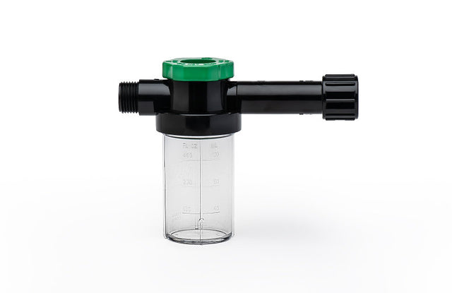 The Mixing Unit is the required delivery system for many Salt-Away applications, including Outboard, I/O, PWC Jet Engine Flushes, most Inboard Flushes, and Pressure Washers. For Pressure Washers, connect inline between the water hose and the hose inlet connection on the pressure washer. Either size reservoir, 6 fl oz (177 ml), or 12 fl oz (355 ml), can be chosen for any of the above applications.